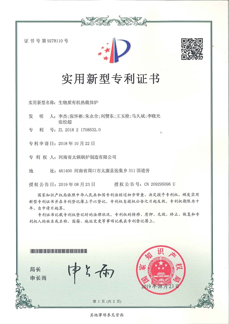 • 生物質(zhì)有機(jī)熱載體爐專利